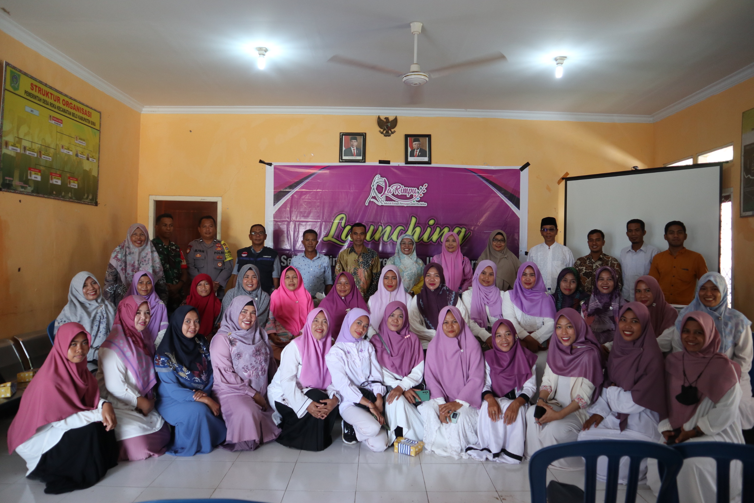 Kegiatan launching ini dihadiri langsung oleh Direktur La Rimpu, Prof. Hj. Atun Wardatun, M. Ag, M.A, Ph.D dan Pembina La Rimpu, Prof. Dr. H. Abdul Wahid, M. Ag, M.Pd. Tak hanya itu, turut hadir juga Ketua Lembaga Bina Damai dan Resolusi Agama (Lembidara), Kabis DP3AP2KB Kab. Bima, Kepala Desa Roi dan Roka serta jajarannya, BABINSA, BABHINKAMTIBMAS Desa Roi dan Roka, fasilitator, volunteer La Rimpu, anggota La Rimpu Desa Ngali-Renda, Kalampa-Dadibou dan peserta 20 orang perempuan muda dan ibu-ibu dari Desa Roi dan Roka yang secara resmi dikukuhkan menjadi anggota La Rimpu Roi-Roka.